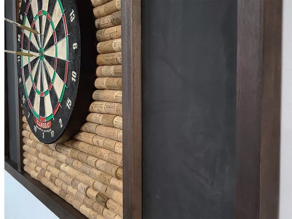 Add a special touch to your game room with the gorgeous Wine Cork Dartboard Backboard. It’s the ultimate must-have for any dartboard enthusiast that wants to add a unique and fun twist to their game room. This backboard protects both your darts and the walls from damage with a large surface of wine corks. Keep score on the dual chalk boards.